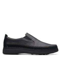 The last word in comfort, our Nature 5 Walk shoe blends a casual silhouette with modern technologies. Active Air™ cushioning uses unique motion-powered pods that activate with every flex of the foot, keeping feet fresh and comfy all day. A nod to Clarks heritage design - crafted stitching on the classic black upper and flecked rubber sole add character to this everyday slip-on.